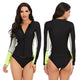 New Women One Piece Swimsuit Rash Guard Slim Long Sleeve