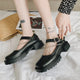 LINK Harajuku Lolita Pumps Patent Leather High Heels Solid Bowtie Maid Cosplay Shoes Soft Women Mary Janes Evening Shoes