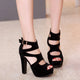 Black Platform Belt Buckle Chunky High Heels